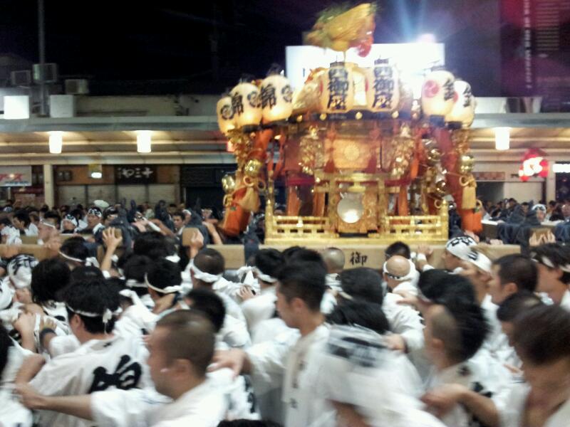 夜になってようやく街へ繰り出したところ、御神輿に遭遇。