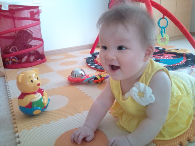 ひとりでお座りできるようになった愛華。