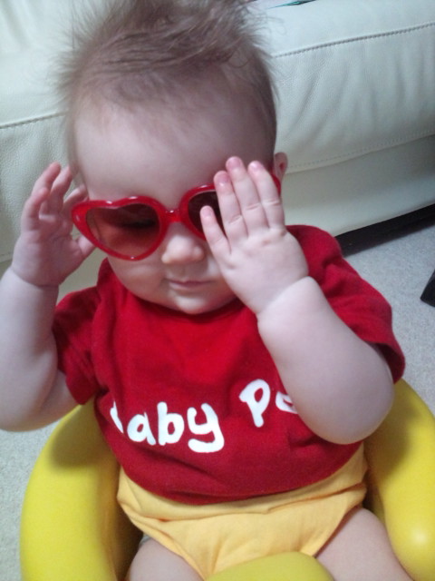 UVサングラスをお試し中の愛華。
