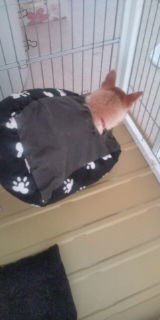 トモがベッドの底をよく噛むので穴が開いてしまいました。