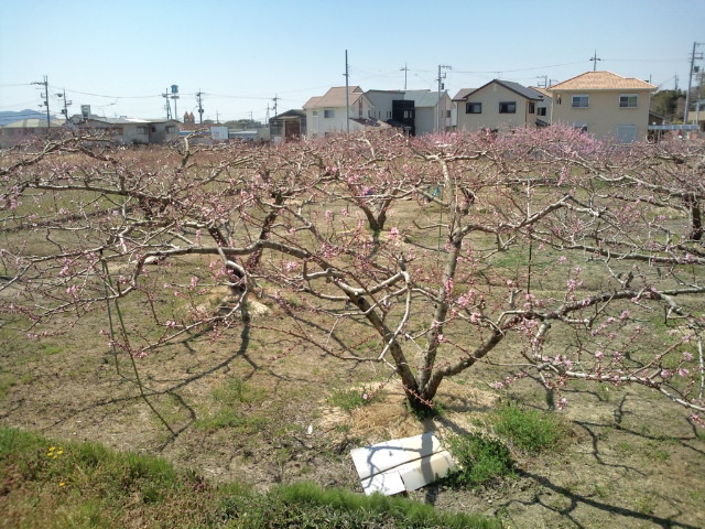 会社の裏にある桃の木。